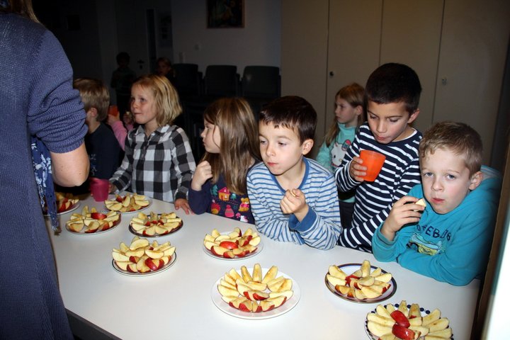 In den Lesepausen war es dann aber aus mit der oben erwähnten Stille! Toben und Jauchzen waren jetzt angesagt. Mit leckeren Äpfeln und Getränken wurde die Pause abgerundet und es konnte wieder weitergelesen werden.