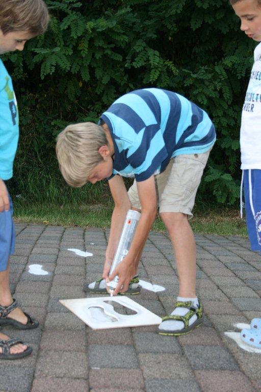Das Team vom Schulverein hatte in den Sommerferien wieder den Weg zur Schule mit neuen Fußstapfen versehen. Diese sollen den Kindern auf dem Schulweg helfen einen besseren Überblick zu bekommen, wo Straßen oder Kreuzungen sicherer zu überqueren sind.